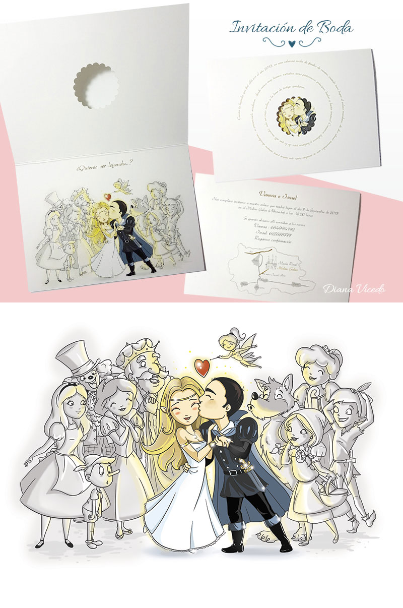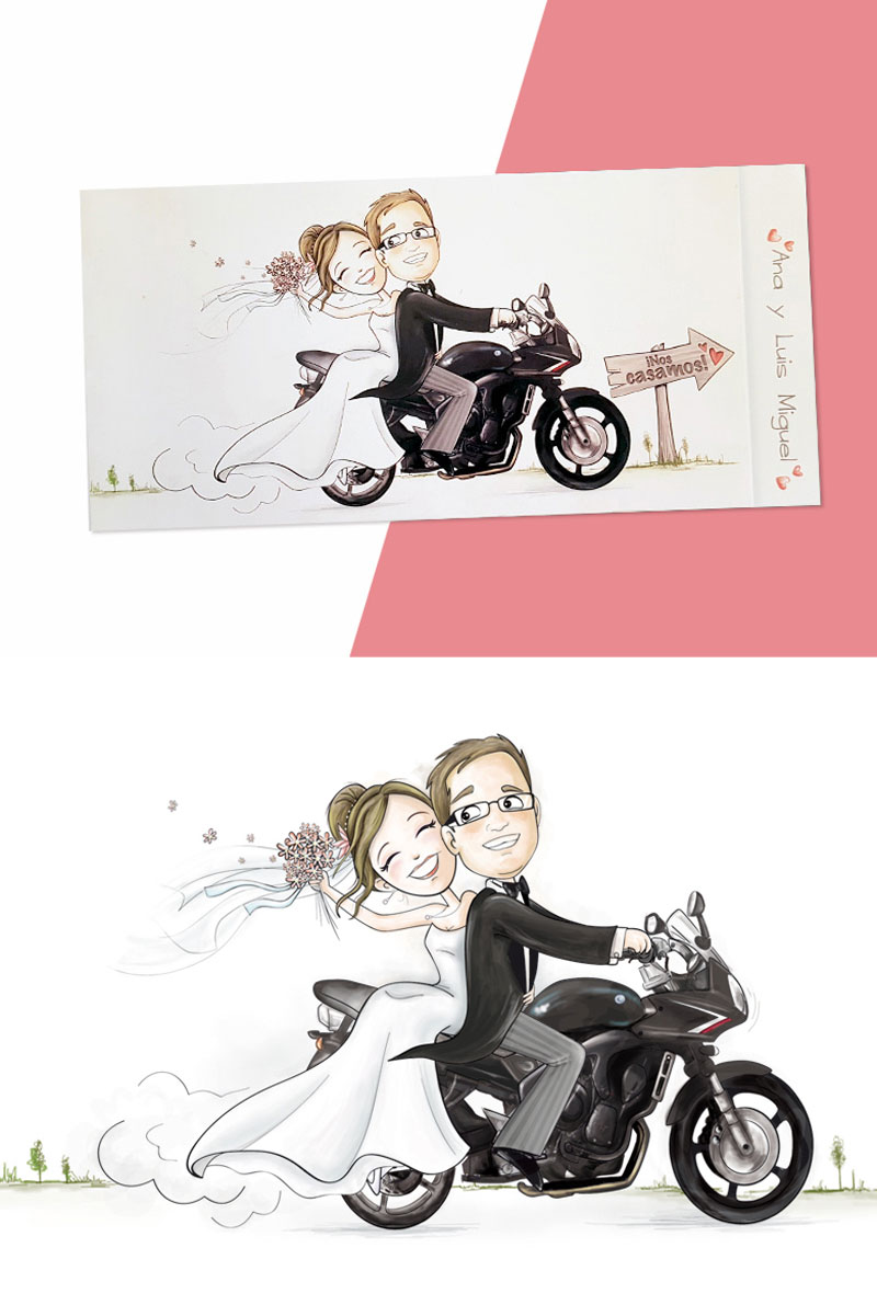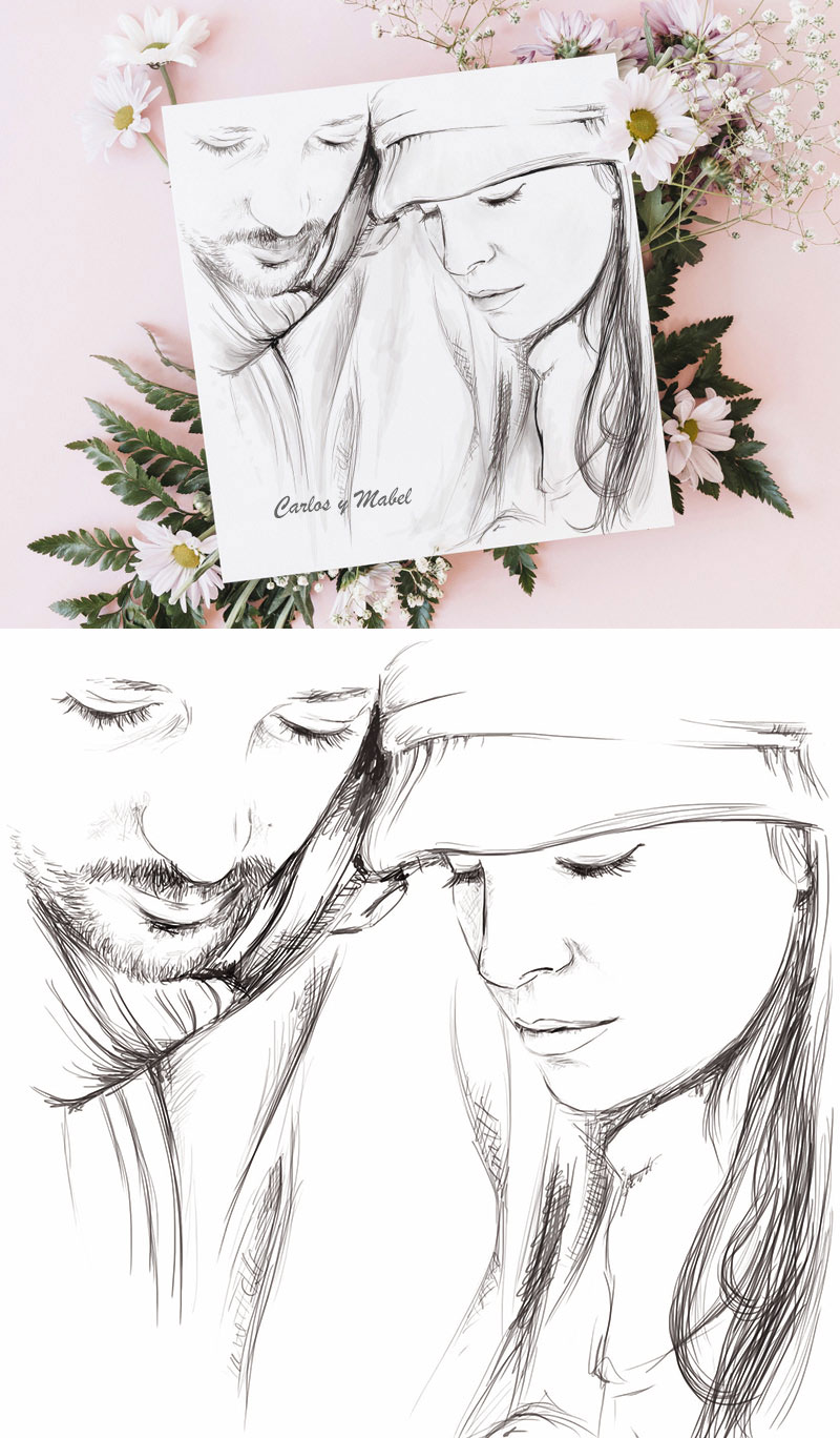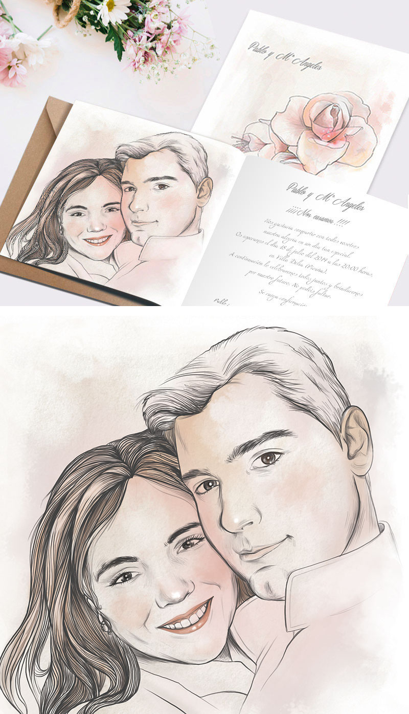 Retratos e ilustraciones para tarjetones de bodas y eventos.