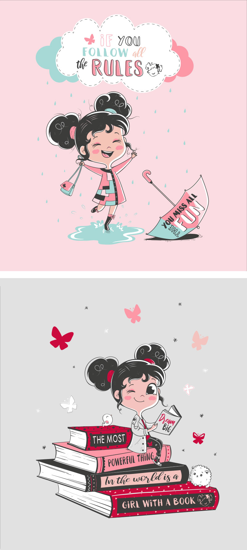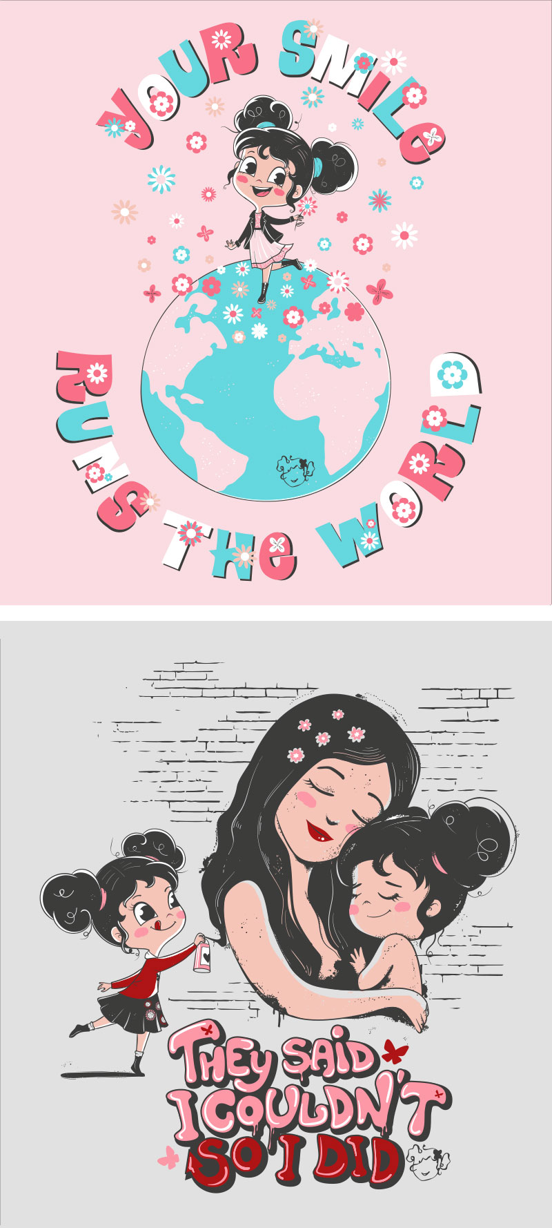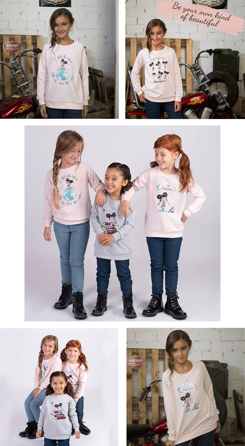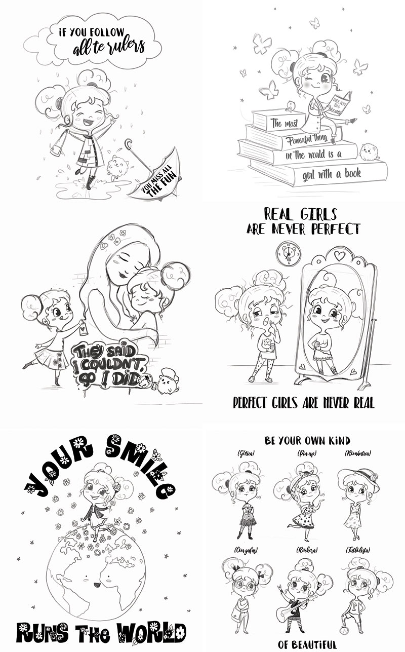 Sweet Emma es una marca de ropa infantil española, ropa diferente para niñas diseñada con alma. Tenían la idea de realizar seis ilustraciones con un motivo común que sería la niña como protagonista. Me enviaron un boceto de cómo querían que fuera esa niña y yo lo adapté a mi estilo.