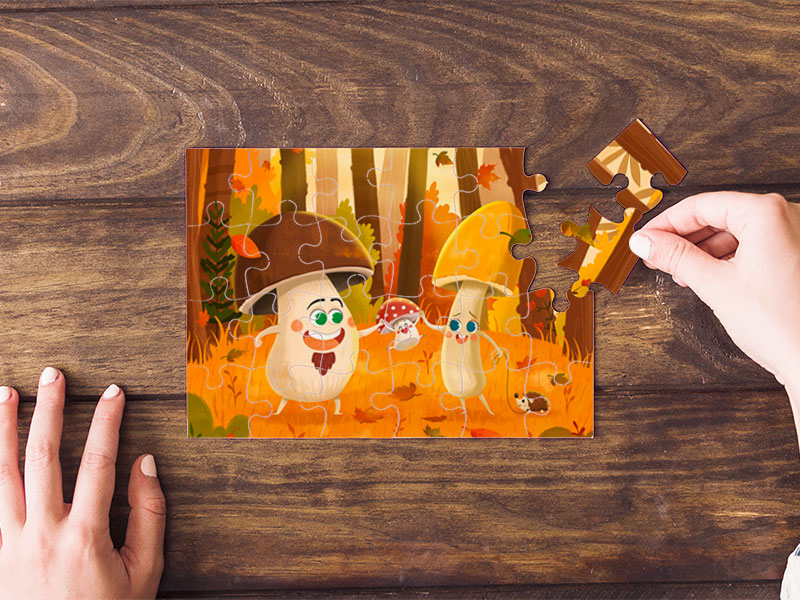 Esta ilustración representa el otoño y se me ha ocurrido la propuesta de hacer con ella un puzzle para hacerlo en familia ayudando a los peques de la casa.